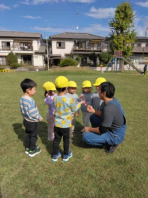 3歳児クラスの子ども達は中峠台亀田谷公園へ行き、一面、芝生の広場で、しっぽとりや鬼ごっこをしました。たくさん走った後のおにぎりの味は、最高だったようです。