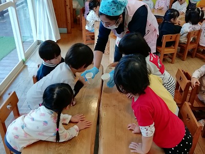 【パンも手づくり、バターも手づくり(2、3歳児クラス)】